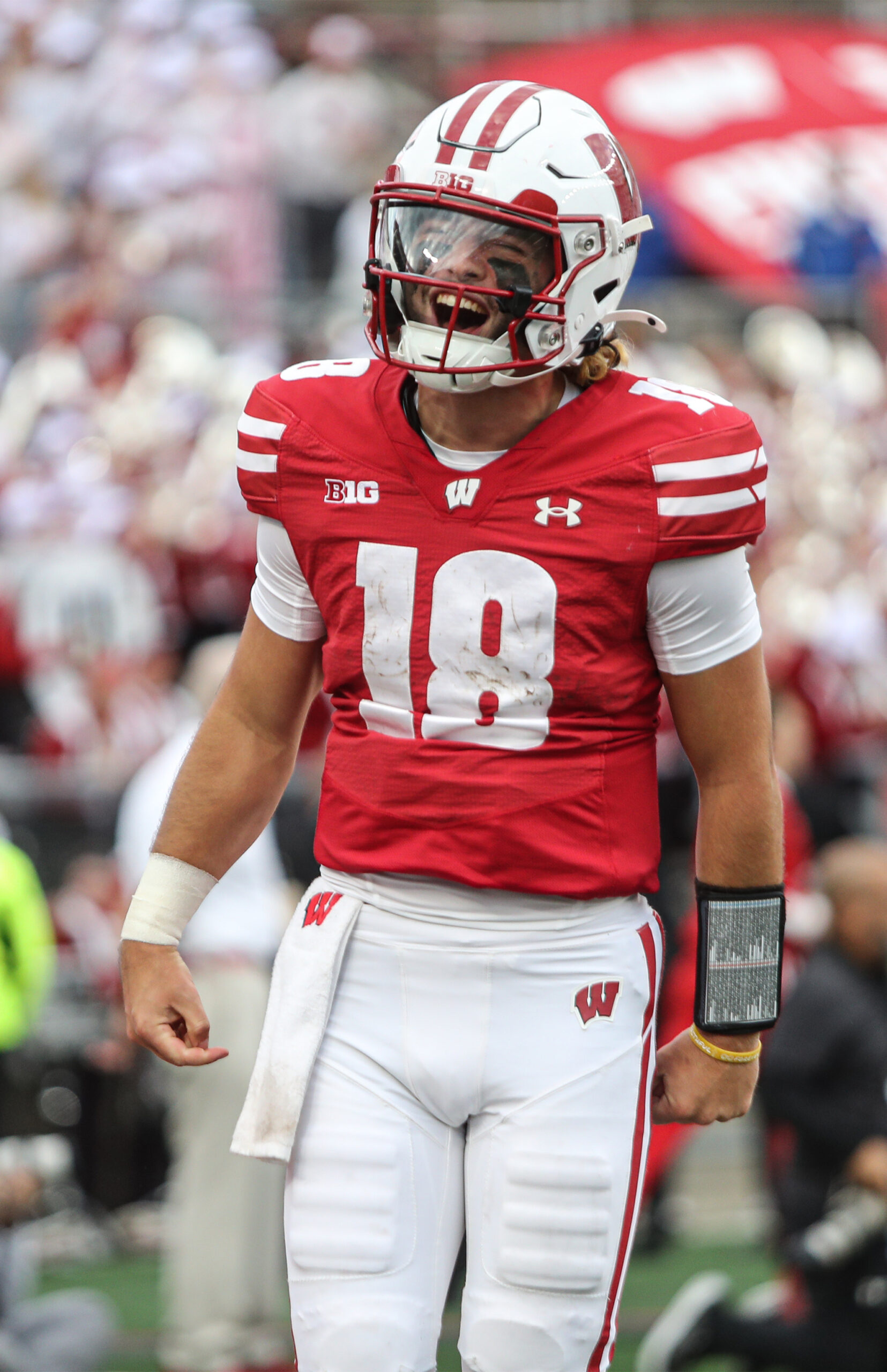 He was intercepted once and threw touchdown compeltions of 3 yards to Tyrell Henry, 58 yards to Jayden Ballard and 17 yards to Lance Mason, who had seven catches for 102 yards. Henry’s touchdown came on fourth-and-goal and put Wisconsin ahead for good in the second quarter.
