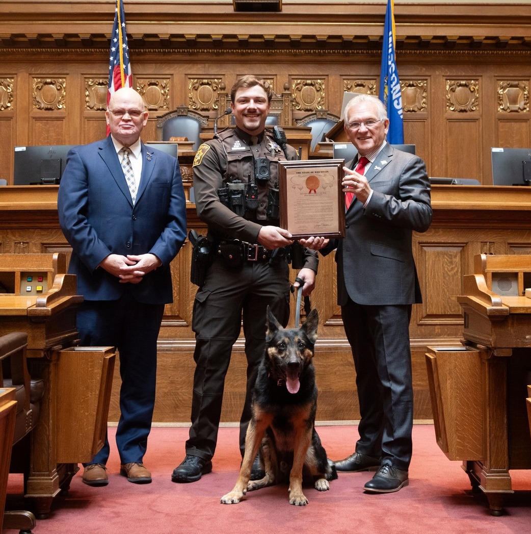 Representative Jerry O’Connor of Fond du Lac County chose Fond du Lac County Sheriff’s Deputy Blaine Evans and K9 Iro as the 60th Assembly District’s First Responders of the Year.