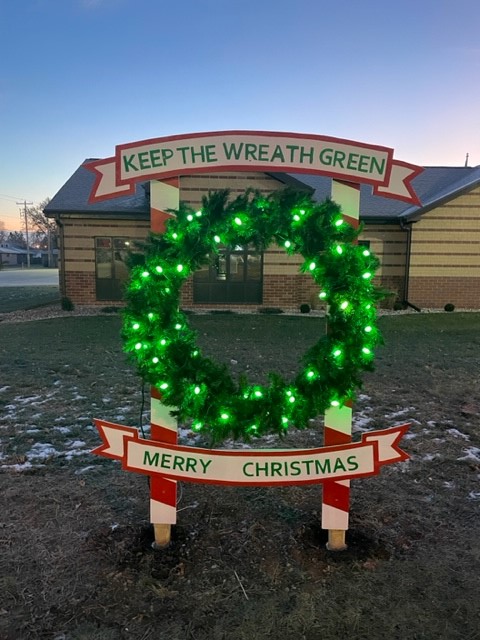 Every year, the department displays the wreath, starting out December 1st with all green lights.