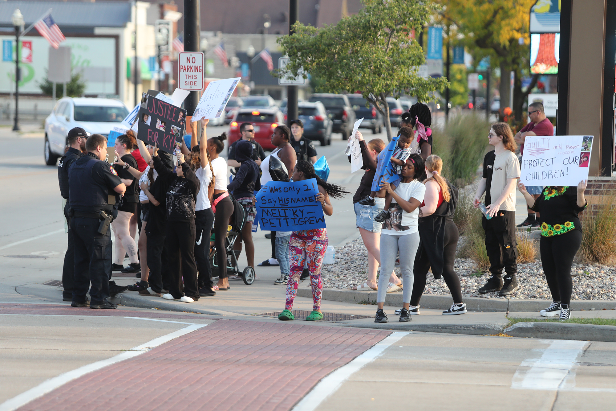 Around 5 p.m. the group, holding signs that had messages regarding a two-year-old that was found deceased in the care of a babysitter Saturday, congregated in front of the Fond du Lac Police Department before moving slightly north to the intersection of Main and Johnson Streets.