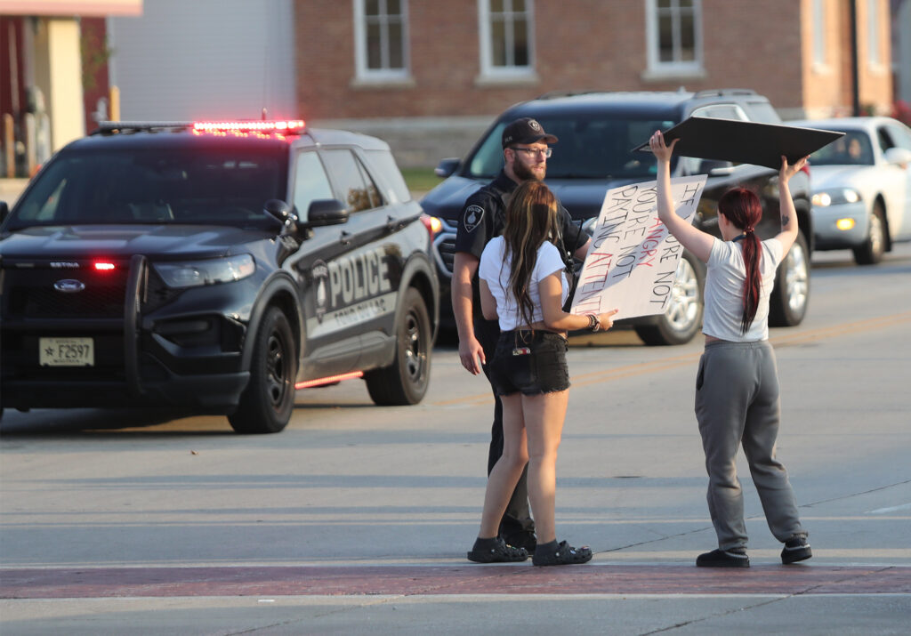 Overall the group stayed behaved though police had to be called for a couple instances. First when they disrupted traffic at the intersection of Main and Johnson and then again after becoming unruly outside a business in the 200 block of north Main Street. Fond du Lac Police shut down traffic in the 200 block of north Main while protesters occupied the area.