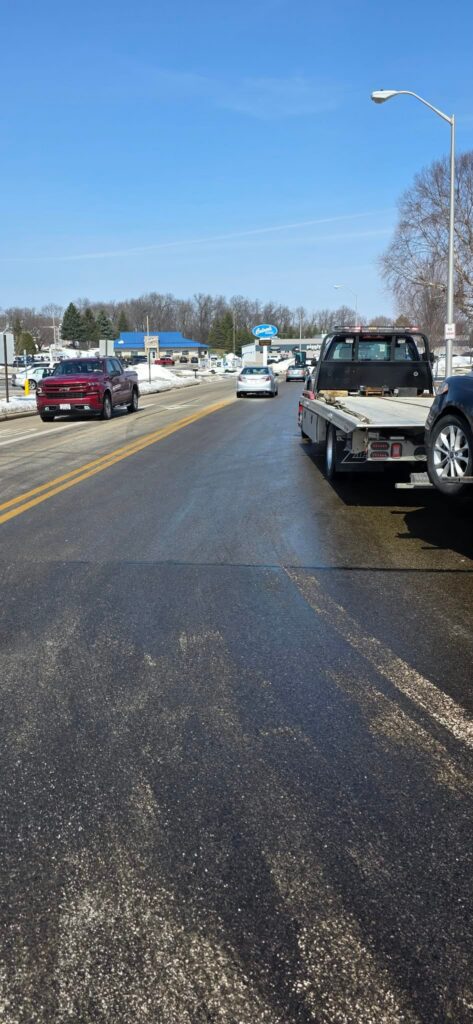 On the early afternoon of Friday, March 20, 2026, a semi hauling food grade cooking oil had a fitting on the tanker portion malfunction, causing a signigicant amount of oil to spill out onto the roadway.